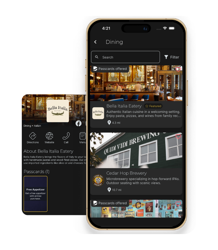 Present your digitally-stamped passcard, save money, support local.